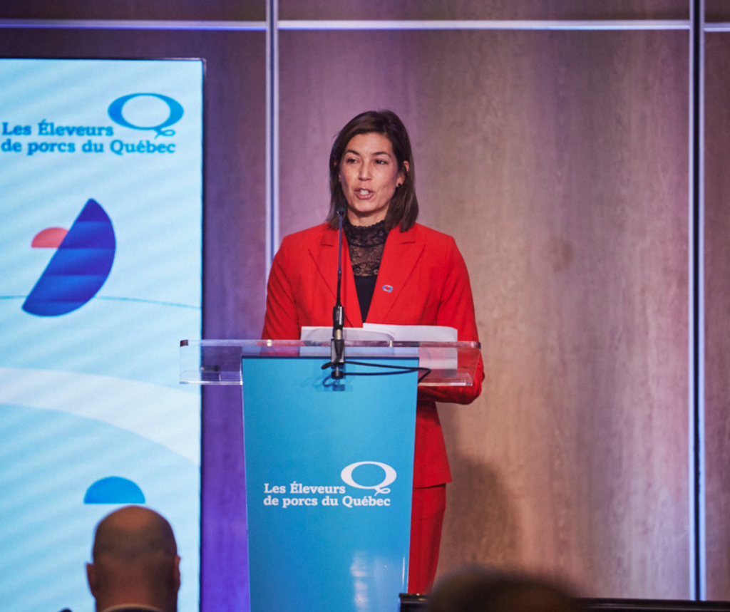 L’après-midi a débuté avec Donald Martel, ministre de l’Agriculture, des Pêcheries et de l’Alimentation du Québec. Il a donné une allocution très réaliste, en tenant compte de la situation politique actuelle de son parti, tout en précisant que, pendant son mandat, il souhaite améliorer la qualité de vie des éleveurs et éleveuses. Toutefois, il a spécifié que cette amélioration ne passerait pas par des montants d’argent supplémentaires, mais plutôt par des allègements réglementaires.