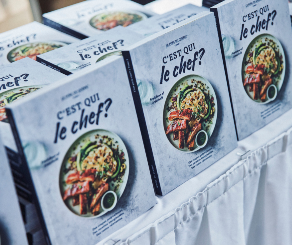 Ensuite Sébastien Lacroix, président-directeur général de l’AQINAC, et Danielle Vaillant, directrice marketing, ont invité les participants à se joindre au Porc Show 2025 et Danielle a lancé en grande première le 3e tome du livre « C’est qui le chef ».
